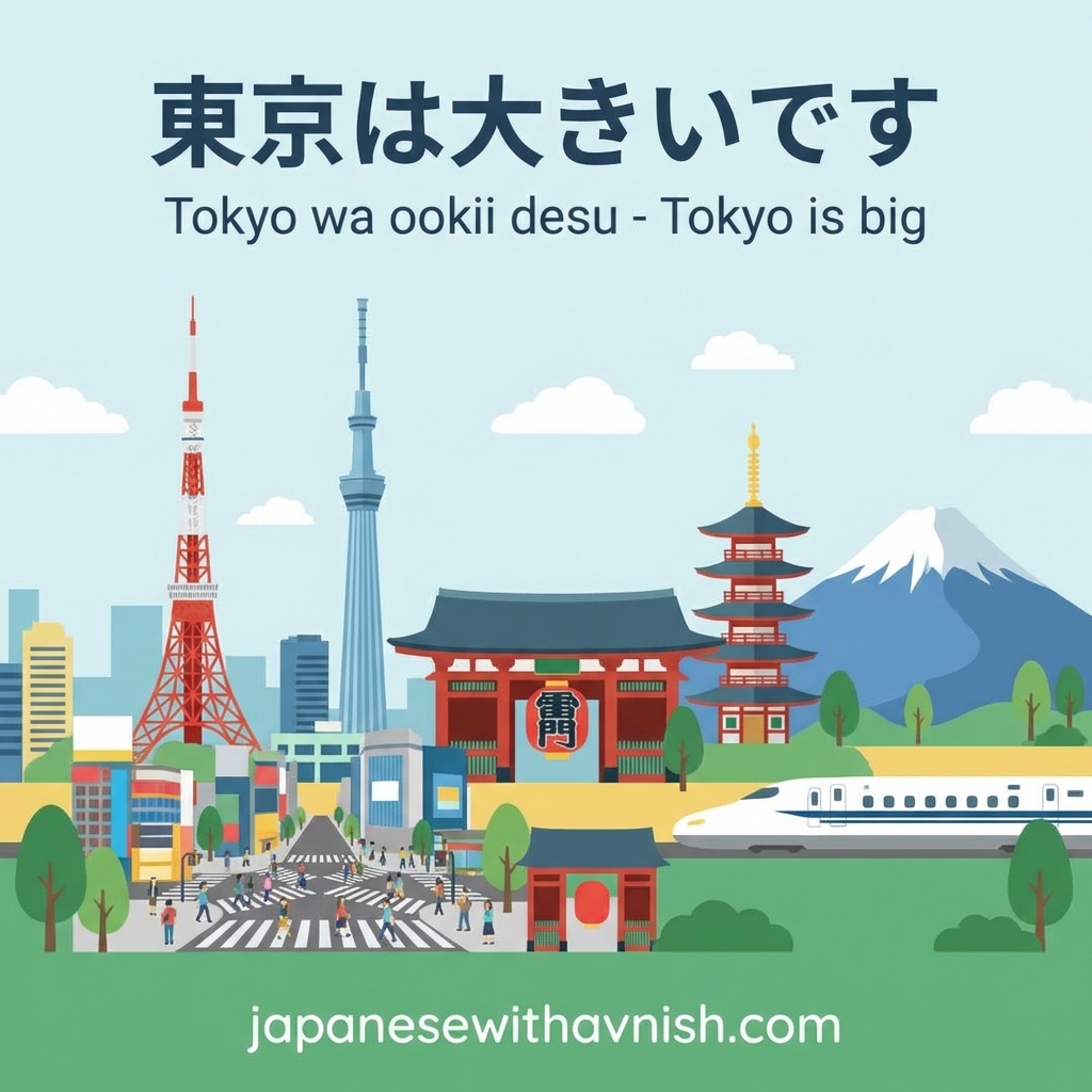 Romaji: Tokyo wa ookii desu.
