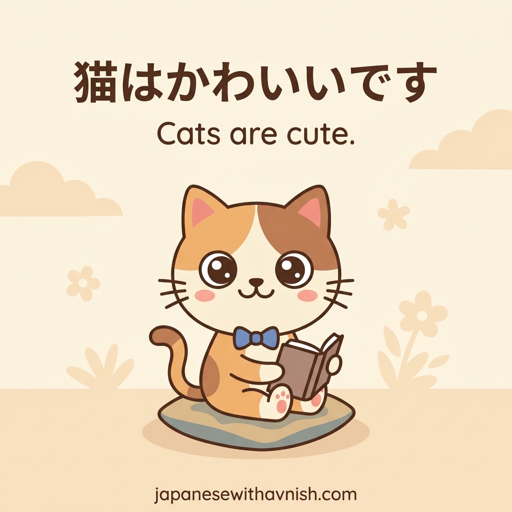 Japanese: 猫はかわいいです。