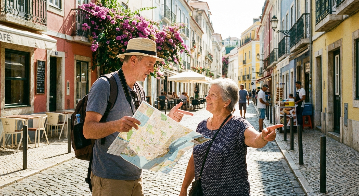 A lost tourist asks a local for help finding a nearby landmark like a park or post office.
