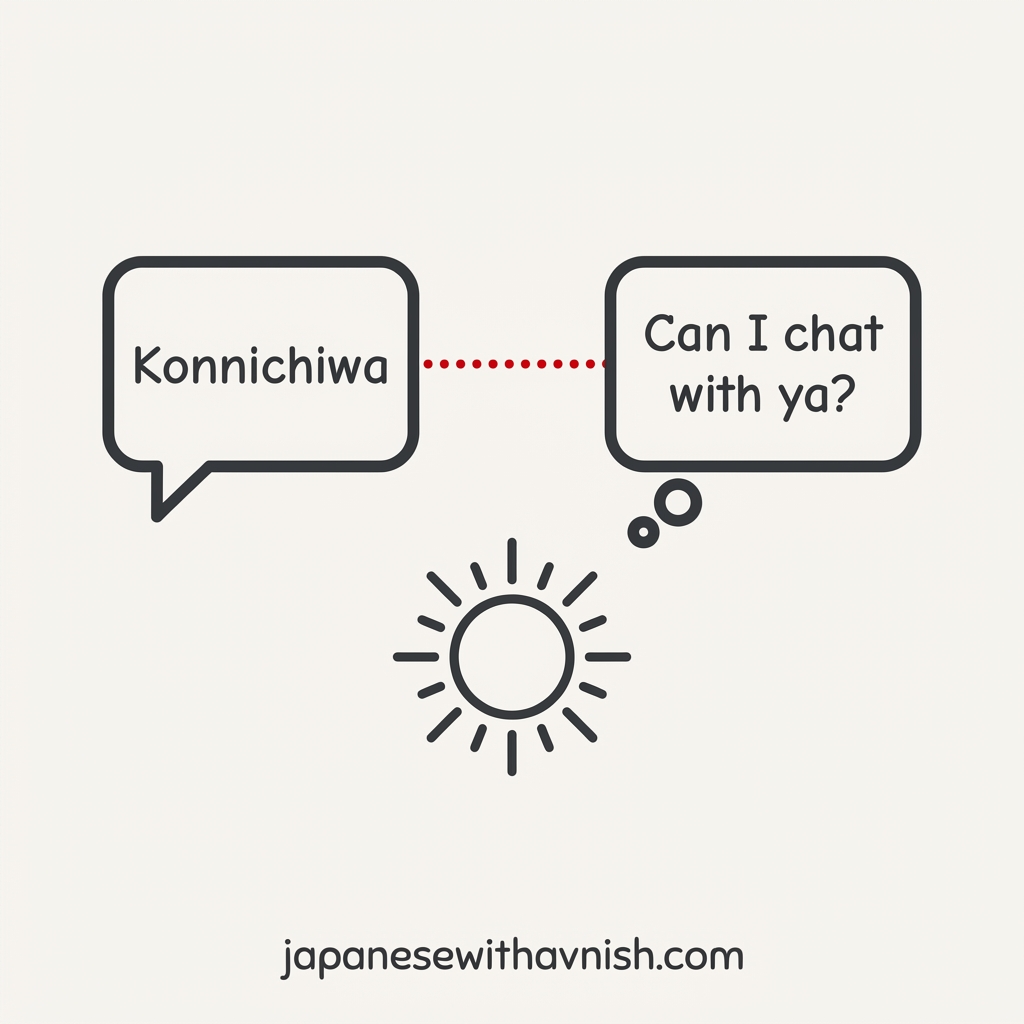 - Think of the sound: "Konnichiwa" sounds like "Can I chat with ya?" Imagine someone politely asking to chat with you in the afternoon.